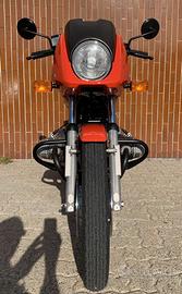 La moto non è stata restaurata, ma conservata. Condizioni ineccepibili e pronta per viaggiare! Targa oro FMI. Veicolo di interesse storico collezionistico. Non paga il bollo! Raro esemplare equipaggiato con orologio digitale e lampeggiatori di emergenza. Costruzione 06/1982, Immatricolazione 01/1984. Motore e trasmissione sono intoccati ed originali (Solo 48000 Km) così come la carrozzeria. Riverniciate solo le ruote a polvere nel colore originale. Sono state effettuate tutte le manutenzioni possibili ed immaginabili, tra cui, ma non solo: -Sostituzione di tutti i cuscinetti ruote e paraoli. -Revisione completa della forcella (paraoli, anelli fine corsa, upgrade molle Wirth e olio). -Impianto frenante rinnovato con pompa, tubi e dischi nuovi, pinze revisionate, pastiglie e ganasce posteriori nuove. -Sostituzione di tutti gli olii lubrificanti e dei filtri con lavaggio coppa olio. -Revisione carburatori con sostituzione di tutte le parti di usura (spilli, getti, farfalle, ecc...). -Trattamento interno del serbatoio con "Tankerite". -Impianto di scarico nuovo ed originale BMW (¤1600!). -Strumentazione revisionata. -Batteria LiFePo4 nuova. -Paracilindri e telaietti per valigie originali BMW incluse. -Pneumatici Metzeler ME77 ME11 nuovi. -Rivestimento sella nuovo. Prossima revisione: 03/2027 Mi sono divertito a lavorarci su, ma poi non la sto usando... Credo che ne acquisterò un'altra e ricomincio daccapo (sono in pensione!). Se sei interessato, credo che sia un'occasione irripetibile. Da vedere! Posso fornire qualsiasi prova, perchè l'ho creata per me, non per venderla...
