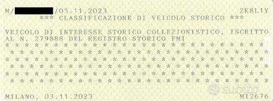Targa oro FMI. Veicolo di interesse storico collezionistico. Non paga il bollo!
