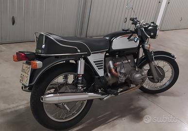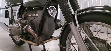 Vendo a malincuore BMW R75/5 del 1972, modello a passo corto SW e serbatoio toaster, conservato mai riverniciato. Tagliando totale con sostituzione di tutti gli oli, cardano, coppia conica, forcelle, cambio, motore e filtro. Batteria, sella, gomme, scarichi completi, specchietti, cavo frizione, tutto nuovo. Cerchi con raggi in acciaio inox serie quadrifoglio. Tachimetro completamente revisionato. Stesso numero motore e telaio, iscritta FMI targa oro e CRS, targa Roma 32.... libretto orginale verde a pagine. Perfetta nessun lavoro da fare, vendo per scarso utilizzo, no perditemo ne offerte ridicole. No valige, si paramotore originale non presente in foto.