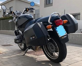 Vendo stupenda BMW R850R Special Edition del 1999 con cerchi a raggi ed inserti in alluminio motore boxe 4 valvole per cilindro raffreddata ad aria e liquido. La moto è iscritta ASI ha ottenuto la targa ORO per essere del tutto originale, tenuta maniacalmente è corredata di due valigie originali BMW e cupolino (mai Montato) batteria nuova, telo copri moto felpato internamente e impermeabile, due selle nuove (fodera in pelle) in aggiunta, gomme nuove. Essendo moto d'epoca paga solo €11.80 di bollo annuo e prezzo vantaggioso sulla RCA.
