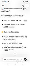 VENDO BELLISSIMA ROCKSTER TENUTA BENE DISPONIBILE A QUALSIASI PROVA CON IL VS MECCANICO DI FIDUCIA. HA SOLO DA CAMBIARE OLIO MOTORE. BOLLO APPENA PAGATO E REVISIONE SCADE APRILE CHE FACCIO IO, GOMME NUOVE E FRENI 80%. HO MESSO VALUTAZIONE PER EVITARE COMMENTI IMPROPRI. SE A QUALCUNO PIACE SI TROVA A JESI. PREZZO LEGGERMENTE TRATTABILE visto bollo pagato e revisione. posso valutare scambio con Honda integra ,honda cross Runner 800 o honda750 ncx DCT.