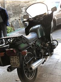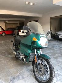 Moto d'epoca BMW R 100 RT verdino con portapacchi sinistro.
