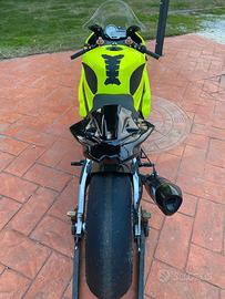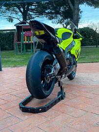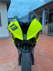 centralina modificata RCK con taglio TC su bobine, completo Akrapovic in acciaio con terminale sempre Akrapovic in carbonio, blipper BMW, cerchi Brembo con dischi sempre Brembo serie oro flottanti, mono Mupo AB1 Factory e forcelle con pompanti modificati e revisione di queste fatta assieme alla revisione motore, pedane regolabili, tenditori catena e questa in passo 520 sostituita inizio stagione 2025, carene in aviofibra con plexiglass WRS nuovo e parafango posteriore in carbonio e sempre in carbonio le protezioni telaio, piastre forcella Alpha racing, pulsantiera sinistra WRS. pompa freno Brembo 19x18 e semimanubri altezza zero.