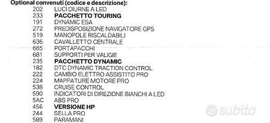 Vendo moto Bmw S 1000 XR versione HP, con pacchetto Touring, pacchetto dynamic, sella pro, paramani, luci diurne (come da foto allegata con descrizione), in perfette condizioni, unico proprietario, tagliandata tutti gli anni in officina Bmw (compreso nel prezzo un tagliando), immatricolata 02/2019 con Km 30.000, tenuta sempre in garage e curatissima. Inoltre compreso nel prezzo flangia da serbatoio Tanklock e piastra per bauletto Monokey Givi. Non compresi nel prezzo le due valigie laterali Kappa da 36Lt con relativi telai e navigatore Bmw Navigator VI.