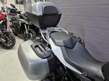 La moto è equipaggiata con valigie laterali e bauletto, rendendola perfetta anche per il turismo a medio e lungo raggio, senza rinunciare al piacere di guida tra le curve.