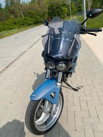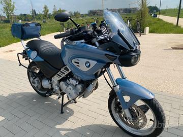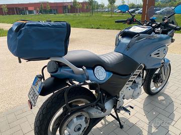 Scarver bmw f650cs completamente ristrutturata. Gomme nuove, tagliando completo appena fatto (450 euro) 3 cupolini(quello della foto ha gli attacchi gs-lc e si possono mettere diverse misure in altezza), copertura finto serbatoio wunderlich, 3 borse originali bmw dedicate, un bauletto bmw 30 lt non ancora montato, manubrio turismo, specchietti in lega, 2 selle, appena fatto con rimozione dell’abs,(rifatto centralina e modulatore ma continuava a dare errore) nuovi tubi freno, presa usb, faretti, frecce filo carrozzeria, fanale posteriore con frecce integrate ecc ecc. Ho uno scatolone di ricambi e tutti i pezzi per riportarla chome in origine. Il telaio borse in foto non è compreso e si vende in un altro annuncio,