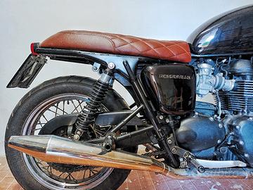 Vendo Triumph Bonneville Black del 2008. Ruote a raggi! Customizzata cafe racer con pochissimi kilometri: circa 27.000. La moto é stata completamente customizzata e poi usata pochissimo in strada. Sempre tenuta in garage e coperta. Batteria nuova. Revisione fatta a luglio 2024. Cambi olio e filtri oltre al check completo ogni 2 anni. Le modifiche estetiche fatte sono molte come si vede dalle foto, scrivetemi per l'elenco/dettagli. Tutte le modifiche sono passate e passabili in revisione. Prezzo di vendita 4.950 La moto è visibile a Igea Marina (RN).