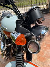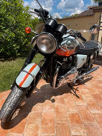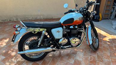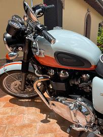 Bellissima moto con colori uguali alla prima serie con riga in oro fatta a mano , costruita per il 50' anno. È una serie limita n' 609 di 650 con tanto di certificato Triumph .Gommata da poco . No perditempo