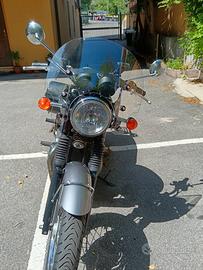 Immatricolata nel maggio 2013. Euro 3. Ottime condizioni, usata pochissimo. Accessori originali: cavalletto centrale, telai borse, borsa destra in pelle, parabrezza, portapacchi, tappo con chiave e soffietti forcella. Nessun lavoro da fare. Revisione valida fino ad ottobre 2027. Si valuta permuta solo con Triumph Speed 400.