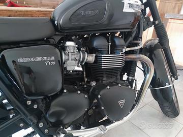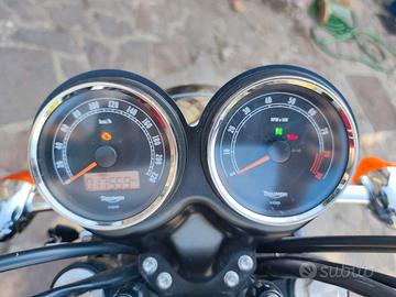 In vendita Triumph Bonneville T100 Black Edition del 2012, l’ultimo anno con alimentazione a carburatori (865 cc, bicilindrico parallelo da 67 CV). Questa è la rara Edizione Speciale Total Black, con finiture nere lucide su motore, telaio. Cerchi cromati e dettagli che la rendono unica e dal look aggressivo e classico allo stesso tempo. La moto è in perfette condizioni estetiche e meccaniche, sempre custodita in garage e curata con attenzione. Vernice, cromature e componenti originali brillano come nuove. Non presenta graffi, ammaccature o segni di usura importanti.Compreso nel prezzo: Coppia di borse laterali in vera pelle originali Triumph Telai portaborse dedicati Tutto pronto per viaggiare comodi e con stile Manutenzione aggiornata: Tagliando appena eseguito Bollo pagato (rinnovo ad agosto 2026) Moto pronta all’uso, affidabile, divertente e con quel fascino retrò British che solo la Bonneville sa dare. Ideale per chi cerca una modern-classic autentica, facile da guidare tutti i giorni ma perfetta anche per weekend e tour. La moto è visibile a Sovicille (Siena) contattatemi per maggiori informazioni o per appuntamenti.