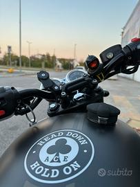 Colorazione esclusiva Matt Storm Grey con banda e grafiche Ace Café, serbatoio con slogan "Head down - Hold on".
