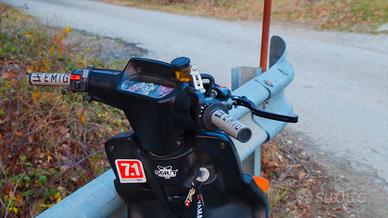 Assieme cedo due bocce da 1L di olio rsk nuove e tutti i pezzi originali, come le ruote da 10 con gomme nuove, forcelle originali da 30mm piantone di sterzo, un motore dr 70cc usato in perfette condizioni, carburatore pwk 21, un sacco di pezzi originali + filtri plastiche, impianto frenante originale, ecc..