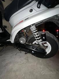 vendo booster spirit lo scooter monta le seguenti modifiche: cilindro polini 70 albero motore polini carburatore 19 filtro a cono scarico yasuni per 70 trasmissione polini completa freno anteriore a margherita freno posteriore appena sostituito ammortizzatore posteriore 4tune bianco di estetica monta: faro anteriore tnt con led blu e led colorati messi sotto lo scooter (entrambi i led si accendono con 2 tasti messi sotto il manubrio) carene e cerchioni carteggiati e verniciata da carrozziere lo scooter è stato tenuto veramente bene e tutte le modifiche sono state fatte da meccanico professionista. gli unici difetti sono che contachilometri e tachimetro sono staccati, e c’e solo l’accensione a pedivella. insieme cedo anche tutti i pezzi vecchi (carene, ammortizzatore posteriore, cilindro, carburatore, disco ecc…) prezzo POCO trattabile giustificato dal fatto che cedo anche molti pezzi originali