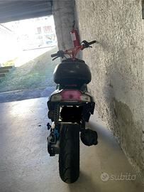 70cc base NUOVO 50km, albero spalle pienne carenzi NUOVO 50km,carburatore polini pwk 24 ,,( un po grande poi prima era montato un motore con piu potente), marmitta giannelli go come nuova filtro top in spugna NUOVO,frizione polini NUOVA 50 km,campana top, cinghia mithubhoschi Nuova 50 km,ammortizzatore posteriore maggiorato,manubrio naked ( c’e anche l originale),gas rapido della domino, pneomatici michelin con neanche 100km.fornisco amche un infinita serie di pezzi originali come manubrio con contachilometri, frecce anteriori, una seconda cinghia nuova imballata mithubhoschi, e numerosi pezzi vari :molle , mollette ,ecc … ( NON ESITARE A CHIEDERE MAGGIORI INFORMAZIONI FOTO E VIDEO DI DELLO SCOOTER) lo scoote è stato completamente rifatto: motore , albero, trasmissione,PREZZO LEGGERMENTE TRATTABILE