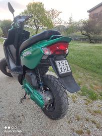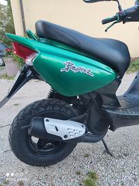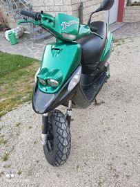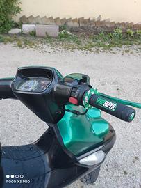 restauro completo a telaio Booster New generation Rocket del 1996 omologato a un posto tutto originale lavori eseguiti in officina gomme nuove freno anteriore nuovo e pompa nuova freno posteriore ferodi nuovi pulizia del carburatore e del miscelatore tubi nuovi riverniciato verde metallizzato e nero metallizzato con finitura catalizzata ammortizzatore nuovo Polini trasmissione cinghia e cambio olio ma sette nuove sella Nuova devio luci nuovi destra e sinistra freno stop tutto funzionante verrà consegnato con revisione appena effettuata chiamare solo se veramente interessati e se intenditori del motorino