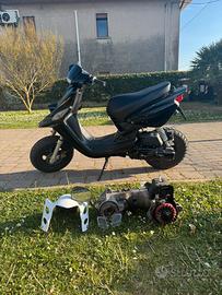 Vendo a malincuore booster next generation del 1996. Lo scooter monta cilindro 75cc dr, carburatore del 17.5,rapporti da velocita top performances e marmitta leo vince gp evo 2. Il motore è stato rifatto completamente e attualmente possiede 2000 kilometri. Quando è stato rifatto il motore sono state cambiate anche le ganasce del freno posteriore. Lo scooter è pronto per l’utilizzo, possiede solo qualche difetto estetico nelle carene, ma il motore è perfetto, parte alla prima spedalata. Assieme allo scooter vendo specchietto originale nero, parafango anteriore bianco, gemme frecce posteriori trasparenti e un secondo blocco motore completo 50cc solamente da sistemare, ma possiede tutti i pezzi. Lo scooter è sempre stato utilizzato con criterio, vendo per inutilizzo. Prezzo leggermente trattabile.