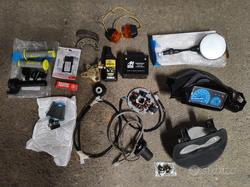 -in più do anche cerchi sempre da 12 originali del Booster con freno a disco Nuovo- cerchi del Aerox con forcella e ammortizzatori che montano tranquillamente sul booster e tanti altri pezzi !