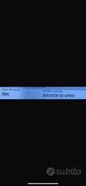 Booster spirit mbk 50 booster funzionante e in ottime condizioni necessita solo di qualche piccolo aggiustamento - marmitta gianelli - booster funzionante - motore 50 - cavalletto - specchietto - i piccoli aggiustamenti sono riferiti a cambio manopole , leva de freno , batteria si accenda con la pedalina , piccola crepa sulla carena non in evidenza - per qualsiasi info contattatemi