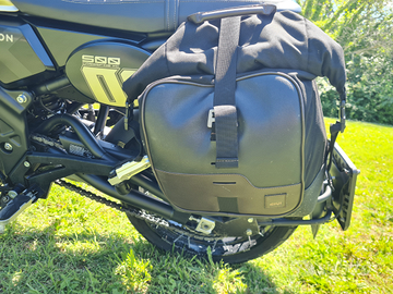 Vendo perché parto per una missione di circa 8 mesi. La moto è una Brixton 500XC, aprile 2022, km.15000, gomme nuove (circa 900km) e diversi optional: manopole riscaldabili, specchietti più piccoli, porta targa basso, faretti supplementari su barre paramotore, barrette porta borse laterali e una borsa morbida laterale della GIVI...Ovviamente ho anche tutti i pezzi originali (porta targa/parafango, mascherina sopra faro).