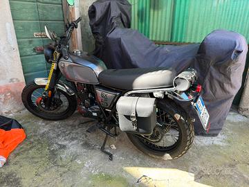 Vendo Brixton 125 Moto ben tenuta compresa di borse laterali, borsa posteriore, bloccadisco, catena e telo coprimoto. Gomme nuove e con pochissimi chilometri. Unico difetto un piccolo taglio nella sella visibile nell’ultima foto. Per qualsiasi ulteriore informazione contattatemi