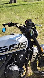 Per chi cerca una moto dal gusto classico e poco convenzionale che si fa notare senza rinunciare alla leggerezza e al divertimento. Sospensioni KYB regolabili, impianto frenante J.Juan altamente reattivo e l'imbattibile design del motore bicilindrico, ABS Bosch. Motore bicilindrico Brixton in linea da 486 cc, con 35 kW (47,6 CV) e 43 Nm di coppia. La moto è guidabile con patente A2, agile e facile da condurre, perfetta per muoversi nel traffico, per i percorsi casa lavoro e le gite fuori porta. Non disdegna le curve e le medie percorrenze. Luce diurna e indicatori di direzione a LED. Accessoriata con cupolino nero, specchietti "bar end", pararadiatore, paramotore (ancora da istallare). Compresi gli specchietti originali. Attualmente monta pneumatici PIRELLI SCORPION TRAIL 2 più adatti alla strada rispetto agli originali troppo tacchettati (80%). Colorazione Bullet Silver La moto non ha mai subito cadute. Unico difetto il copri-serratura del tappo della benzina. Patente A2. Euro 5. Sempre tagliandata. Scadenza revisione 31/05/2027. Doppia chiave. La cambio solo per aumentare un po' la cilindrata. Prezzo trattabile.