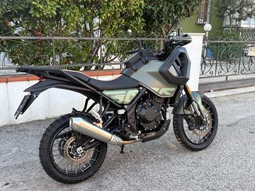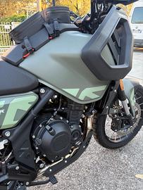 Moto nuova euro 5+,guidabile con patente A2 cilindrata 500 cc bicilindrica Sella comfort Serbatoio maggiorato Sospensioni Kayaba pluriregolabili con escursione maggiorata Fari full Led Grande schermo TFT Fendinebbia a Led Borse serbatoio incluse Garanzia 4 anni dalla casa madre Possibilità di finanziamento a tasso agevolato. Spese di immatricolazione e pre consegna escluse