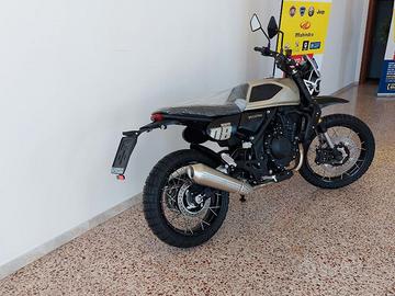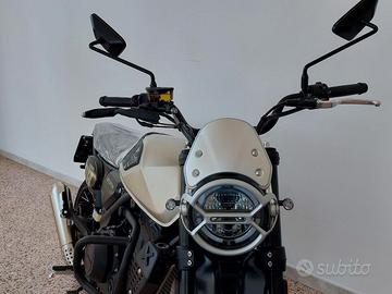 La gamma dell'indistruttibile motore bicilindrico in linea di Brixton viene ulteriormente ampliata con la Crossfire 500 XC. La maggiore escursione delle sospensioni, la ruota anteriore da 19 pollici, il manubrio più alto e le Pirelli Scorpion Rally STR rendono l'ultima Crossfire 500 in grado di reggere il confronto con il fuoristrada. E c'è molto di più: skid plate, barre di protezione e griglia del radiatore sono già di serie sulla XC, così come i nuovi cerchi a razze incrociate, la sella piatta, le protezioni nere del serbatoio e il parafango rialzato. Il sorprendente effetto collaterale del nuovo design? Probabilmente la migliore maneggevolezza della Crossfire anche sull'asfalto. La nuova Brixton Crossfire 500 XC porta la classe media al top.Dal prezzo di listino sono esclusi i costi dell' immatricolazione €300
