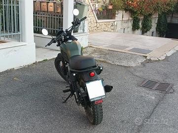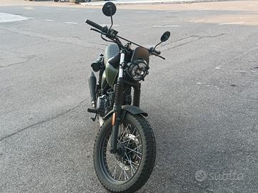 Moto Brixton Felsberg 125 stile scrambler. Acquistata ad agosto 2022, unico proprietario. Colore verde opaco "Cargo Green". Circa 10000 chilometri. Freni a disco anteriore e posteriore con sistema ABS. Condizioni ottime sia di motore che di carrozzeria. Gli unici graffi presenti sono sulla parte finale dello scarico e sui bilancieri ai lati delle manopole. Prima revisione ad agosto 2026