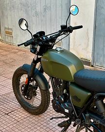 Brixton Felsberg 125cc con ABS colore verde militare e personalizzata con un look unico ed accattivante.