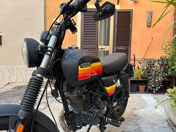 Vendo Brixton SK8 in ottime condizioni, completamente riverniciata da bianco a nero opaco con grafiche stile vintage (fasce giallo/arancio/rosso) che la rendono molto più aggressiva e moderna rispetto alla versione originale.
