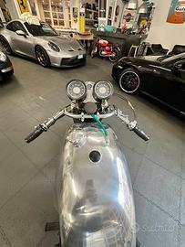 BSA Spitfire 650 del 1968. La moto e' in perfetto stato di conservazione e funzionamento ed ha appena effettuato una manutenzione completa. Al momento monta un serbatoio in alluminio da 5 galloni, manubrio sportivo, sella monoposto e scarichi due in uno. Fornisco serbatoio America, coppia di fianchetti rossi, manubrio e scarichi originali.