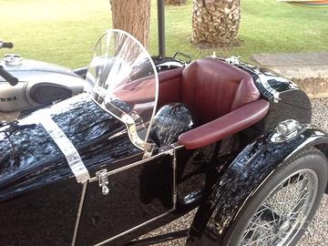 Sidecar SWALLOW Inglese a balestre e biscottini per moto anni 40 - 50. Il telaio triangolare molto robusto conferisce oltre al buon funzionamento una soluzione comoda ed innovativa che avevano in pochi per quanto riguarda l'accesso alla barchetta senza bisogno di sormontare la balestra unica o barchetta senza sportello di accesso. Attualmente montato su una BSA M20 del 39. Sono compresi i morsetti, ball joint e supporti in fusione originali e quanto può servire per essere montato anche in altre moto dello stesso periodo. Ovviamente potrà essere montato su tante altre moto dello stesso periodo non solo Inglesi.