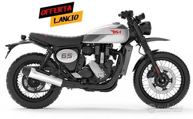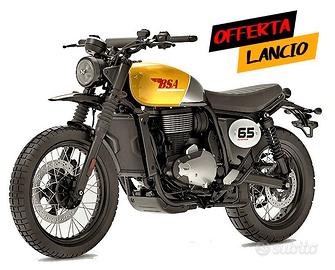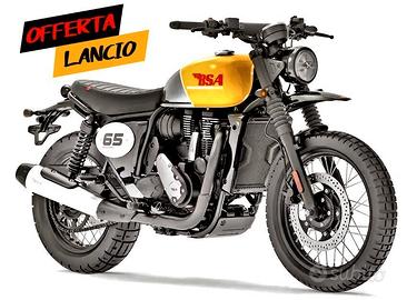BSA Scrambler 650 - NUOVA OFFERTA LANCIO 6.650€ Motore monocilindrico da 652 cc, Raffreddato a liquido, DOHC, 4 valvole, doppia candela, 45 CV e 55 Nm di coppia a 4.000 giri - E5+ Forcella da 41 millimetri Cerchi a raggi tubless Pirelli Scorpion Rally STR - 110/80-19 ant. e 150/70-17 post. Freni Brembo anteriore con pinza assiale a doppio pistoncino e disco flottante da 320 mm, posteriore pinza a singolo pistoncino, disco da 255 mm. Peso 218Kg Altezza sella 82cm FINANZIAMENTO TASSO ZERO Possibilità di trasporto in tutta Italia ABS Freni a disco