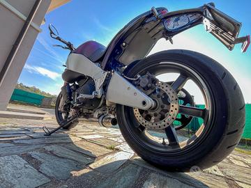 Buell XB9SX 2005 – 25.500 km – Scarico Exan – Pezzi originali inclusi Vendo Buell XB9SX in ottime condizioni generali, moto divertentissima e sempre utilizzata con cura. 🔧 Dati principali: Anno: 2005 Km: 25.500 Revisione: scadenza 06/2026 Ultimo tagliando: 24000 km (olio motore/olio primaria + filtri) 🔩 Accessori e modifiche: Scarico omologato Exan (db killer estraibile) Filtro aria sportivo K&N Leve e specchietti aftermarket omologati Verniciatura rimovibile cangiante metallizzata blu/viola in base alla luce (realizzata su base nera già riverniciata dal precedente proprietario). 📦 Incluso nella vendita: Tutti i pezzi originali (scarico, componenti estetici, ecc.) 💰 Prezzo: 5200€ Solo interessati, no curiosi, no perditempo.