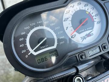 Buell XB 12 S, anno 2007 , 1200 cc , 86.000km. Sempre effettuata regolare manutenzione, a 78.000 km effettuati i seguenti interventi presso la nostra officina: kit pistoni alta compressione Wiseco, lavorazione condotti teste, scarico Jardine, mappatura centralina, kit dischi frizione, revisione forcelle anteriori, disco freno anteriore Ebc. Accessori: portatarga corto, frecce a led, griglia faro, specchi a manubrio, leve manubrio regolabili, pompa freno radiale, presa d'aria DX. Moto in conto vendita