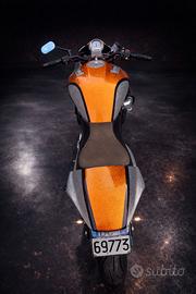 Rarissima M2 post 2000, cioè la versione con teste Thunderstorm e volano alleggerito che aumentarono la potenza da 75 a 95cv e la coppia fino a 115nm a soli 5700 giri! Un mostro con una forza ed una voce brutale ulteriormente elevati grazie a filtro K&N, scarico Pro-Race, centralina Screamin Eagle e kit Dynojet. Comandare l'acceleratore di questa moto, per qualsiasi appassionato, è un esperienza che non ha eguali nell'intero panorama motoristico mondiale. E' come dare vita e voce ad una creatura mitologica, che resterà per sempre irripetibile. Verniciatura metal flakes grana grossa coperta da 20 strati di lucido levigati a mano abbinata a molte parti in raggrinzente nero Harley. Diverse parti Rizoma, sella Alcantara, piastra porta contagiri su misura in titanio inciso a mano,... Fa parte da quasi 20 anni della mia collezione privata, mantenuta in movimento ogni 2/3 mesi per circa 200/300 km annui totali. Disponibile in vendita anche la Husaberg FS 650 special visibile nell'ultima foto (pubblicata tra i miei annunci) ed una Vespa 50 special con motore 200cc omologata al 100% compreso passeggero e che ha la stessa verniciatura della Buell (la Vespa però non è pubblicata perché preferisco trattative più riservate essendo un pezzo unico irripetibile...). Prezzo trattabile per veloce realizzo.