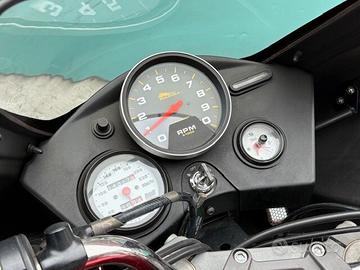 il carburatore Mikuni, il contagiri Autometer e la forcella con doppio freno a disco, una configurazione rara che la distingue nettamente dalle S3 standard.
