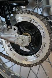 Marca: Bultaco Modello: Alpina 350 Tipologia: moto da alpinismo / trail Anno: 1980 Condizioni: ottime, pronta all'uso La moto si presenta in ottime condizioni ed è pronta all'uso. L'impianto frenante è eccellente in rapporto alla sua età, l'impianto elettrico è funzionante e il motore è in ordine. Anche la marmitta è in ottime condizioni. La moto non è dotata di documenti, ma viene rilasciata regolare fattura di vendita. Si avvia con al massimo due colpi di pedivella, risultando comoda e piacevole per gite tra colline, montagne e percorsi sterrati. È la vera moto da lasciare nella casa di montagna. Non essendo provvista di documenti, non sono previste spese per il passaggio di proprietà. È presente anche il libretto uso e manutenzione. ****English**** The motorcycle is presented in excellent condition and is ready to use. The braking system is excellent considering its age, the electrical system is fully working, and the engine is in good order. The exhaust is also in excellent condition. The motorcycle does not have documents, but we issue a regular sales invoice. It starts with no more than two kicks, making it ideal and enjoyable for rides through hills, mountains, and dirt roads. This is the perfect bike to keep at your mountain house. As it has no documents, there are no ownership transfer costs. The owner's manual and maintenance booklet are also included. Moris Pelizzoni Possibilità di visionare il veicolo presso la nostra officina; per maggiori informazioni visitare il nostro sito internet oppure tramite contatto diretto: Responsabile Moris Pelizzoni moris@ruoteceleri.it RUOTE CELERI Salone e officina al servizio del collezionistaOffriamo servizi di vendita, manutenzione, restauro e personalizzazione di auto, moto e trattori d' epoca. Sede: Via del progresso, 31 - 36025 Noventa Vicentina (VI - Vicenza).