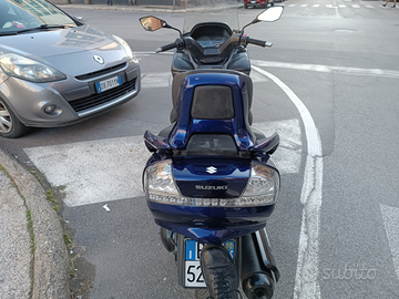 Burgman da un centinaio di km sostituiti tubi olio e paraolio forcella vesrah red sponge MALOSSI cinghia MITSUBOSHI frizione TOP PERFORMANCE con campana alleggerita molla contrasto bianca top performance cursori e rulli variatore nuovi olio motore BARDHAL xtc 60 10W50 luci posteriori a LED batteria nuova candela all' iridio gomme Michelin cambiate questa estate specchietti e leve freni anti rottura modifica marmitta E55