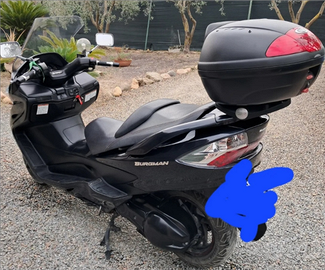 Vero affare vendo Suzuki Burgman 400 cc modello accessoriato anno 2015 dotato di blocca disco,bauletto,fari anteriori led azzurri, acessori copri gambe invernale,telo copri moto,appena revisionato e appena tagliandato il 26 giugno alla concessionaria Suzuki di cagliari il tutto documentabile ,gommato ,si presenta benissimo in generale.. sempre ben tenuto