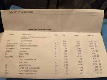 CINGHIA NUOVA e TAGLIANDO COMPLETO (come da foto fattura)del 31 LUGLIO 25 .