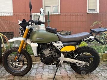 Perfetta in ogni sua parte. In aggiunta portatarga corto,leve regolabili,paramani,copriradiatore olio,portapacchi acciaio,portaoggetti serbatoio Fantic ed un fantastico scarico completo serie Racing (omologato Fantic) in carbonio di ARROW con un sound UNICO
