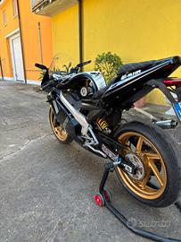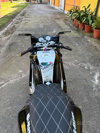 Vendo a malincuore cagiva mito 125 sp 525 Moto in ottime condizioni. Monta un cilindro praparato, testa ribassata, biella ricavata dal pieno, pacco lamellare e guida flussi lavorato, lamelle in carbonio, carburatore vhsh 30 da kart, campana frizione e cestello alleggeriti, espansione completa jollymoto corsa. La moto dispone di cambio rovesciato e monta inoltre una trassmione passo piccolo 15/48, pompa freno radiale 19x20, comando frizione regolabile accossato. Sulla strumentazione è presente un computer stage 6 per controllare i gas di scarico, presente inoltre la possibilità di usare due mappe motore tramite pulsante gestite dalla centralina zeeltronic. Moto targata utilizzata solo in strada, mai in pista!