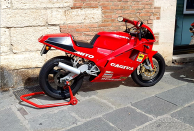 È un conservato, non gli è mai stato fatta nessuna modifica, nessun incidente, è tutta originale come Cagiva l'ha voluta. Comprata diversi anni fa dal primo ed unico propietario che l'ha sempre tenuta in garage sotto un telo, io l'ho presa, lavata, iscritta al registro storico FMI e messa in esposizione nel mio garage, non l'ho mai utilizzata, mai accesa e per questo motivo necessità sicuramente di un tagliando generale.