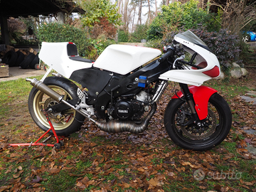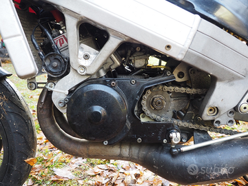 Vendo collezione di numero tre moto da pista, tutte con motore Yamaha RD 350. La prima è una Cagiva Mito 125 Ev del 2000 con motore RD 350, immatricolata da fare passaggio, ho anche le carene laterali non visibili nelle foto, richiesta euro 4.500,00. La seconda è una Yamaha RD 350 telaio 31K, forcella Ducati con doppio disco freno anteriore, pedane racing, forcellone posteriore RGV Gamma 250, no carene, richiesta euro 4.000,00. La terza è una Yamaha TZR 125 telaio nero con motore RD 350 gruppo termico maggiorato Athena, carburatori dell'Orto 30 nuovi, marmitte Jolly Moto, richiesta euro 5.000,00. Le vedo tutte funzionanti, per acquisto in blocco posso ragionare sul prezzo.