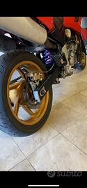 Completamente riverniciata in rosso Ducati nei minimi dettagli, cerchi verniciati oro e forcelle, forcellone, telaietti e pedaline verniciati in nero più altri dettagli, tutto verniciato a polvere in carrozzeria e niente fatto in casa. Tutto ciò che è intorno al motore è stato sostituito con ricambi originali alcuni e ad altri revisionati (pompa benzina, filtro benzina, filtro interno ai serbatoi, iniettori nuovi, iniettori, sistema tubi benzina nuovo con tubi vulcanizzati). Inoltre la moto monta i dischi dei freni anteriori a Margherita nuovi. Leva e filo frizione nuovi. Le sospensioni sono state rifatte sull'anteriore e nel posteriore è stata montata un molla più rigida per una guida sportiva in più il mono è stato ricaricato ed il gommino è stato sostituito con uno nuovo, leveraggi sostituiti. La corona, catena e pignone sono stati sostituiti così come i cuscinetti delle ruote, tutti i perni sono nuovi. Radiatore nuovo e relativi tubi tutti nuovi e vaschetta recupero nuova.