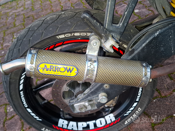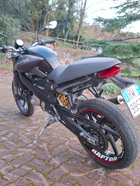 Vendo bellissima Cagiva Raptor 125 2T del 2004. Moto veramente prestazionale, Ripotenziata con scarico completo Arrow senza nessun tipo di blocco e valvola CTS spalancata, cammina che è una meraviglia. Rettifica del pistone effettuata 4.000 km fa (non per grip), catena e pignone nuovi, batteria nuova. Effettuata sostituzione dell'olio del cambio e dei freni, Ho sempre utilizzato oli miscela premium come Bardahl Competition. Presenta segni di usura generali, ma è meccanicamente perfetta. Da segnalare: il tachimetro non funziona, c'è un leggero gioco al gas e ha un piccolo problema all'accensione che a volte fa contatto il tastino, ma la moto parte sempre immediatamente a mano. Tutti questi problemi sono facilmente risolvibili con pochi accorgimenti, ma vendo perché ho fretta e non ho tempo di sistemarli.