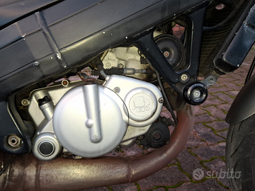 Vendo bellissima Cagiva Raptor 125 2T del 2004. Moto veramente prestazionale, Ripotenziata con scarico completo Arrow senza nessun tipo di blocco e valvola CTS spalancata, cammina che è una meraviglia. Rettifica del pistone effettuata 4.000 km fa (non per grip), catena e pignone nuovi, batteria nuova. Effettuata sostituzione dell'olio del cambio e dei freni, Ho sempre utilizzato oli miscela premium come Bardahl Competition. Presenta segni di usura generali, ma è meccanicamente perfetta. Da segnalare: il tachimetro non funziona, c'è un leggero gioco al gas e ha un piccolo problema all'accensione che a volte fa contatto il tastino, ma la moto parte sempre immediatamente a mano. Tutti questi problemi sono facilmente risolvibili con pochi accorgimenti, ma vendo perché ho fretta e non ho tempo di sistemarli.