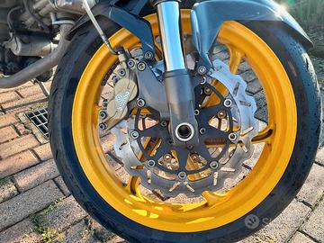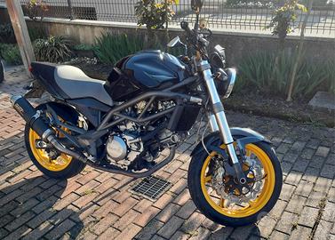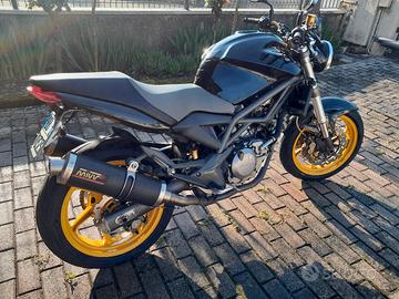 Raptor 650 in ottime condizioni di meccanica ed estetica. Telaio Mv Augusta, motore 650 Suzuki affidabilissimo e divertente. Moto per tutti da principianti con bassa altezza sella da terra per toccare bene anche per persone basse di statura, a persone più esperte con un motore brillante e che da soddisfazioni. moto molto migliore in tantissimi aspetti rispetto alla "cugina" ducati monster dell'epoca, sia per caratteristiche tecniche che per qualità e durata. manutenzione facile ed economica , affidabilissima. La moto ha delle personalizzazioni estetiche di pregio: carene e parafango in carbonio (possiedo anche le originali), sella bicolore (carbon look nel lato passeggero) (possiedo anche sella originale perfetta), serbatoi oli freno in ergal (e originali), freni a disco a margherita anteriori e posteriore (anche gli originali), 3 coppie di specchietti, sostituita catena corona e pignone (ho gli originali), sostituito filtro aria e kit dynojet getti e spilli carburatori (ho gli originali), attualmente monta scarichi Mivv in carbonio omologati, ma quest' ultimi vengono venduti aggiungendo 300 € al prezzo.. .. altrimenti viene venduta con scarichi originali. Bollo e revisione ok. Denis.