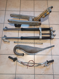 La forcella è del modello '87 ed è stata revisionata con sostituzione di paraolio ed olio. La foderina sella è nuova e vengono fornite numerose parti nuove (grafiche, kit trasmissione, tabella anteriore,ecc).